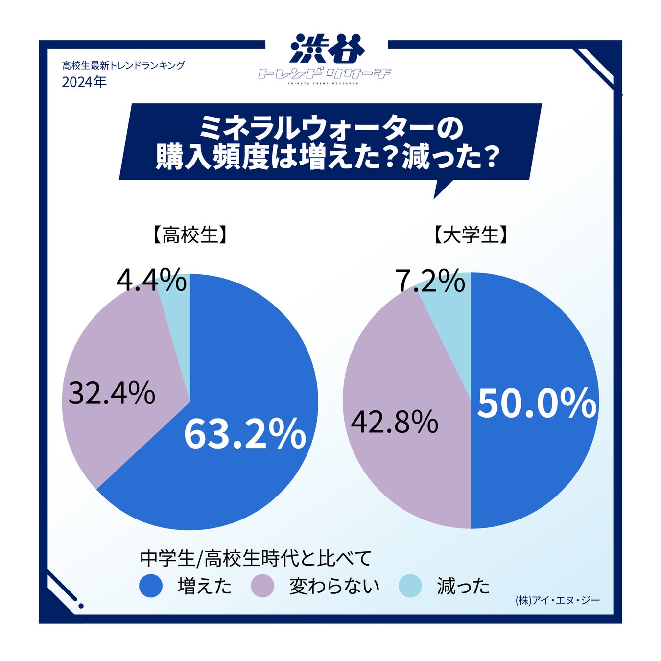 高校生・大学生ともに以前と比べてミネラルウォーターの飲む頻度が増加!