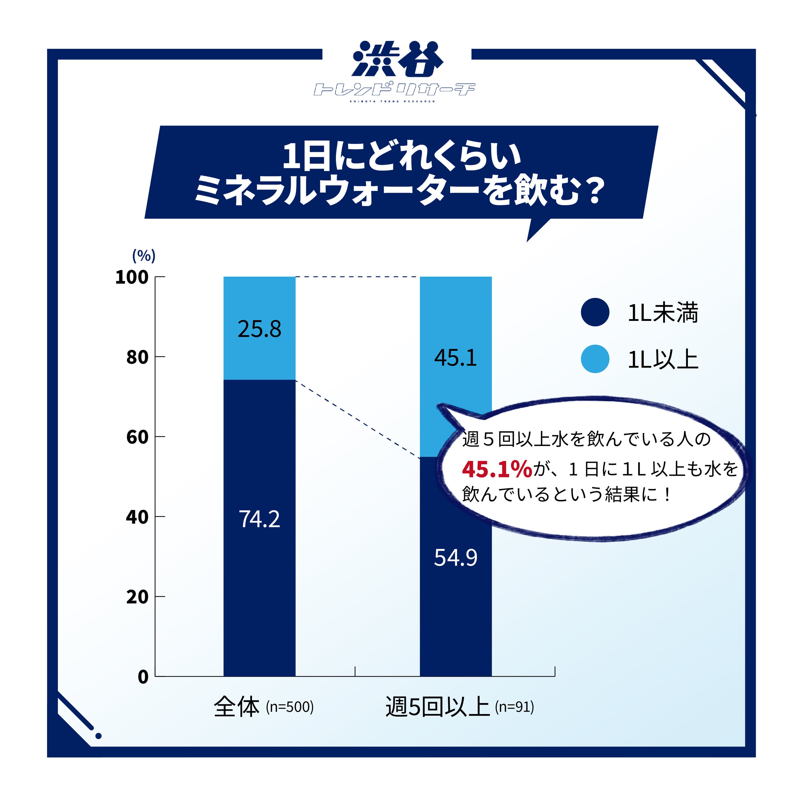 ミネラルウォーターの飲料頻度は週に1回以上が最多!飲用頻度が多い人ほど1日に飲む量・購入サイズは大きい!