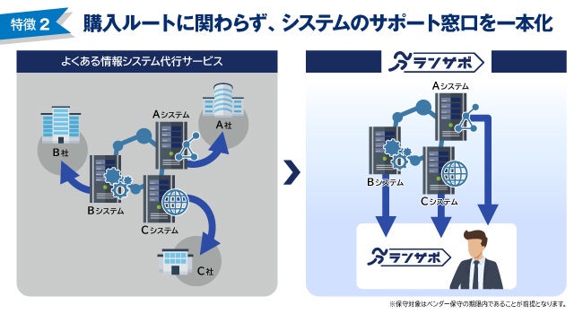 - 特徴2:購入ルートに関わらず、システムのサポート窓口を一本化