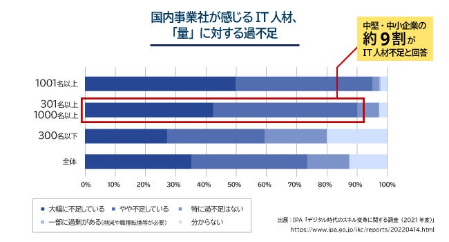 - 中堅・中小企業の約9割が「IT人材が不足している」と回答
