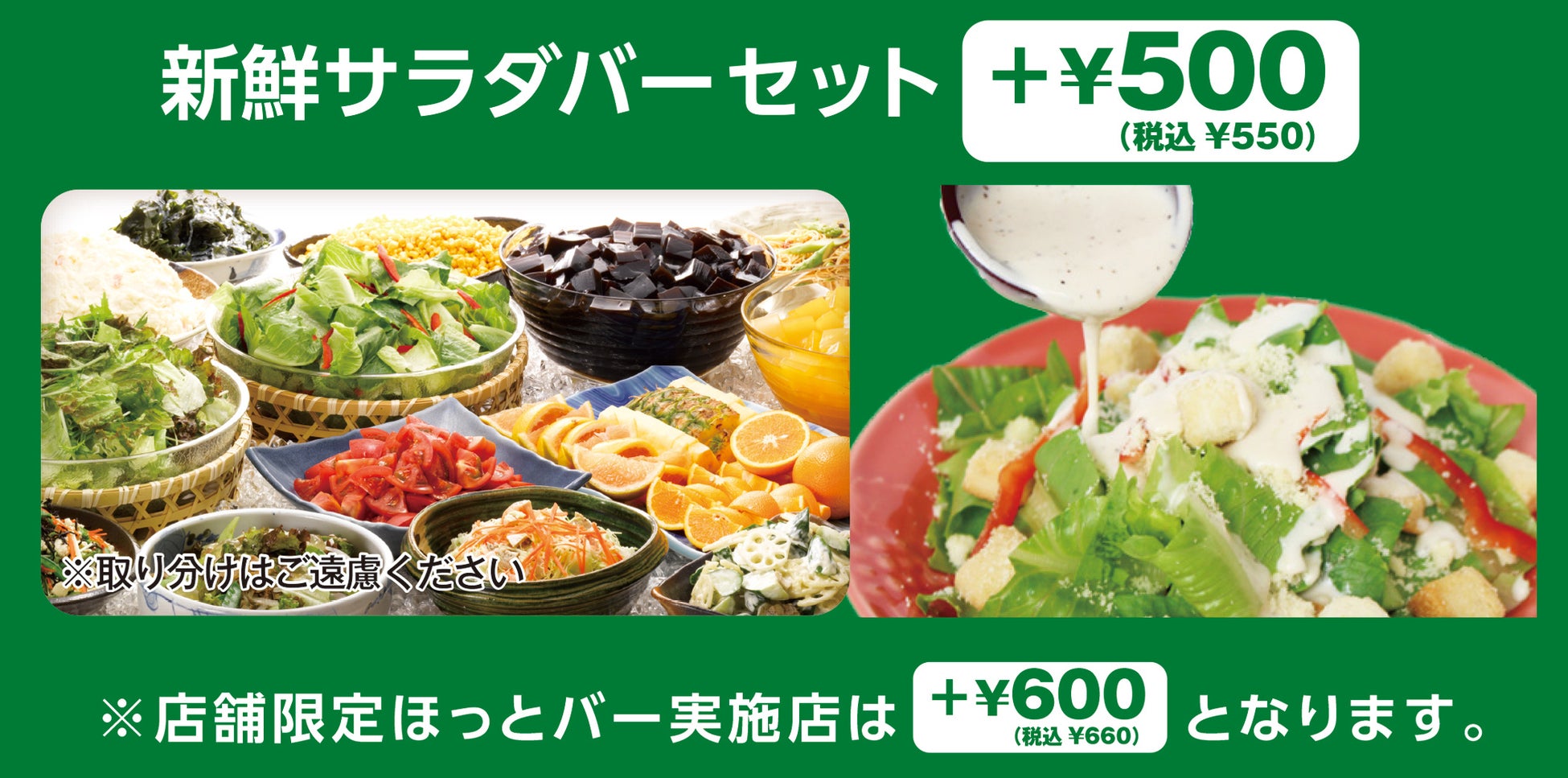 ※一部 ほっとバー実施店舗は、ブロンコセット700円(税込 770円)、新鮮サラダバーセット600円(税込 660円)となります。