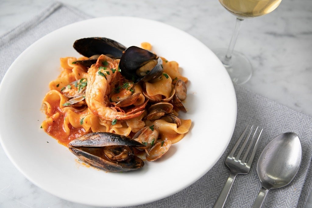 オマール海老とムール貝のペスカトーレロッソ マファルディーネ