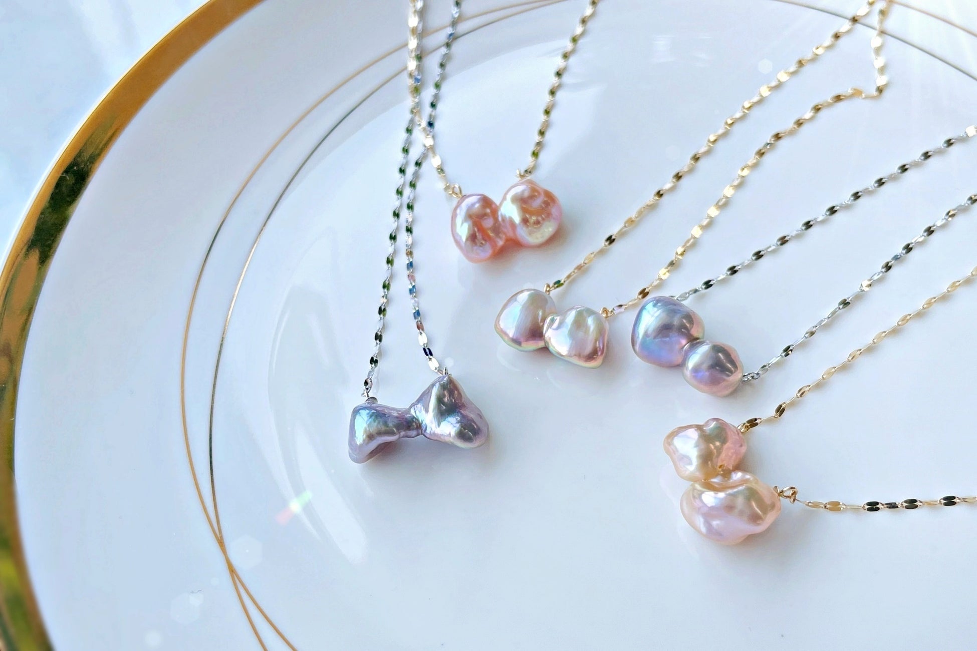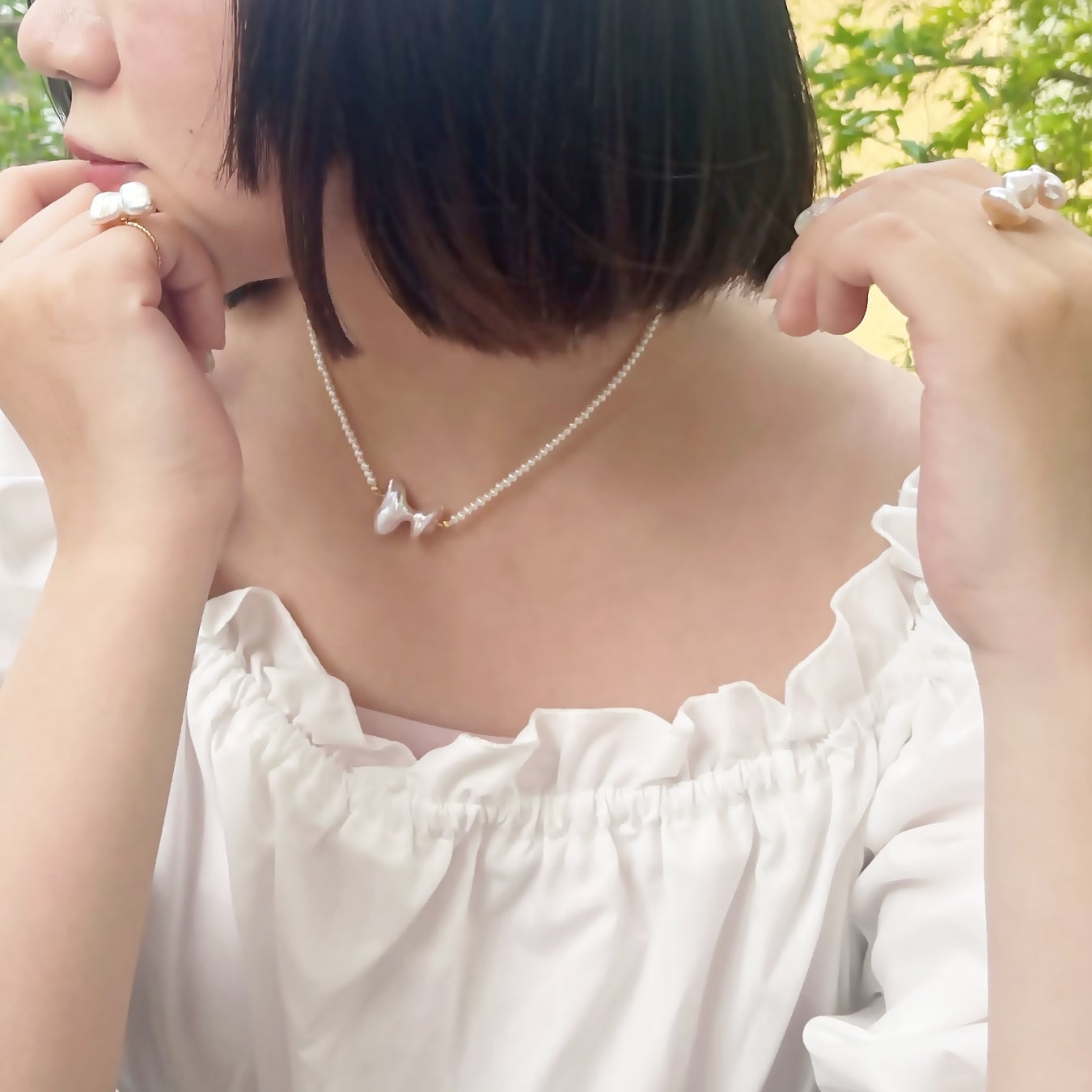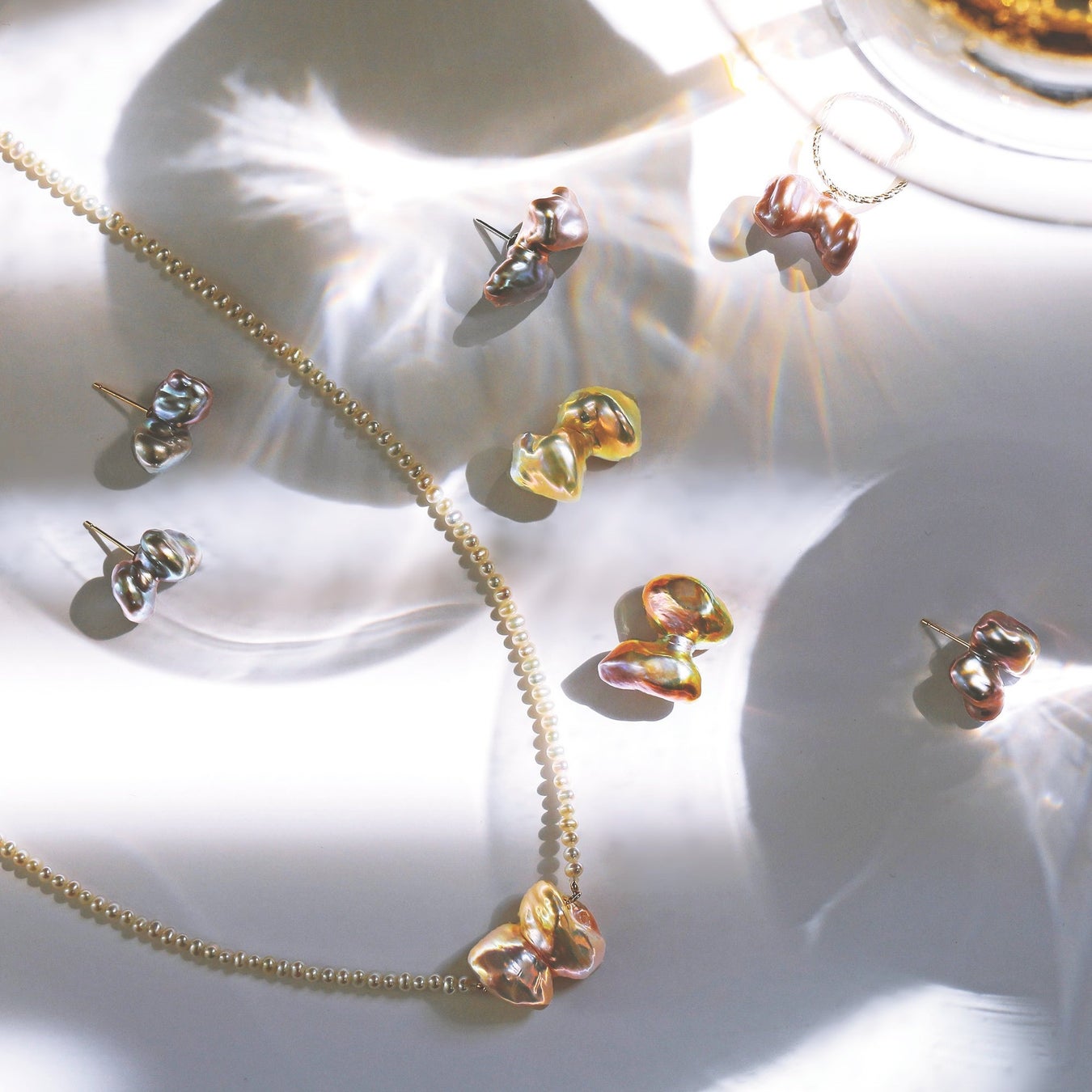 今コレクションでは、リボンのようなフォルムの超個性&稀少なケシパールを厳選。愛らしさがありながらも大人の抜け感と遊び心のあるジュエリーに。