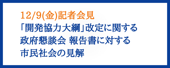 NGOらが連携し記者会見を12/9(金)実施「どうなる・どうする?これからの開発協力・ODA~「開発協力大綱」改定に関する政府懇談会 報告書に対する市民社会の見解~」