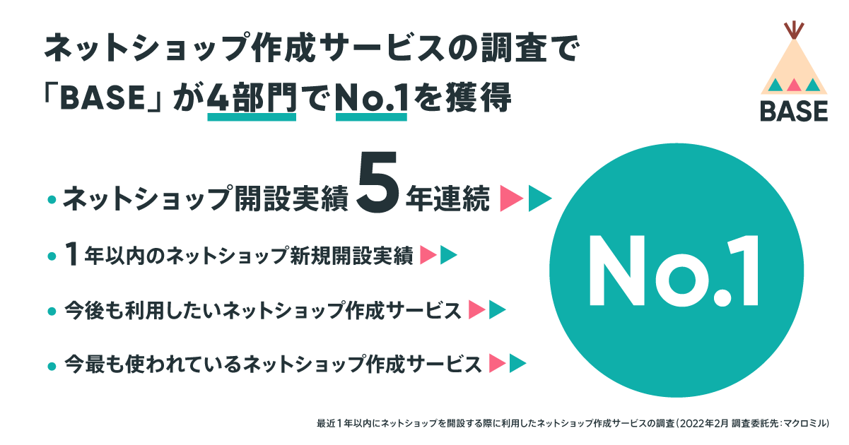 成長してもより使いやすくなる「BASE」がネットショップ作成サービスの調査で4部門で1位を獲得
