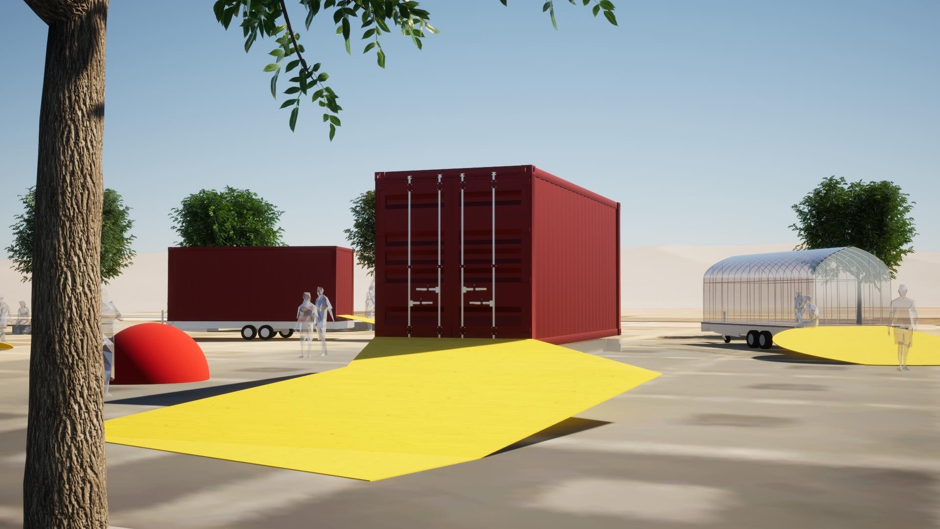 また、「花の広場」に隣接する「石と光の広場」で、『アーティフィシャル・ビオトープ(人工生物環)』と題した屋外でのアート作品の展覧会を展開します。キュレーターのYoshidayamar(吉田山)さんと建築コレクティブ、GROUPのメンバーが創作した展覧会会場のパビリオンを舞台に、新進の現代アート作家がそれぞれの視座・表現手法を用いて仮設のビオトープ(生物空間)を作り上げていきます。「パビリオン」の中核を成すのは、海を臨む臨海副都心の風景から切り出された「コンテナ」。コンテナを表現の舞台として設置し、物流を代表とした経済の営みと生物の営みをアートで結びつけるこれまでにない取り組みを展開します。参加アーティストは、石毛健太さん、藤倉麻子さん、細井美裕さん、渡辺志桜里さん。音楽から3DCGでの映像表現など多様な表現で石と光の広場を彩ります。