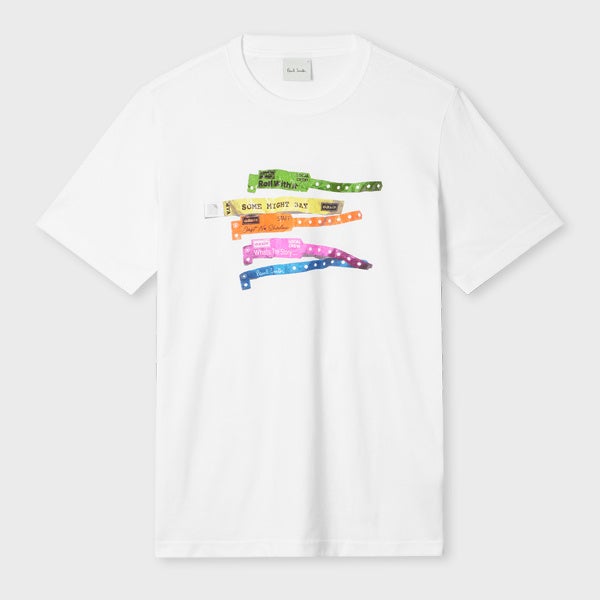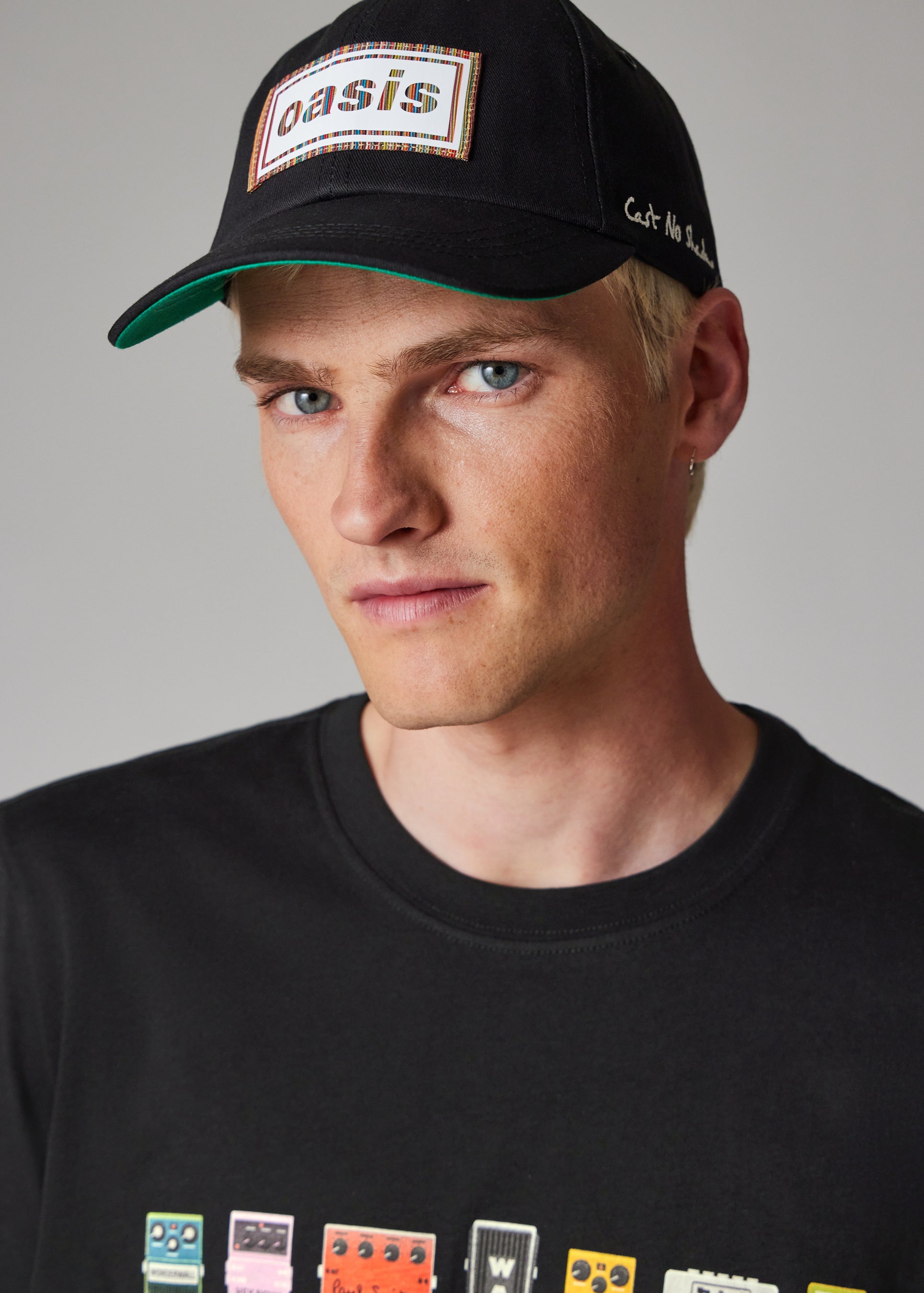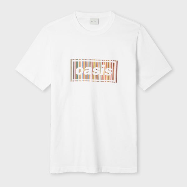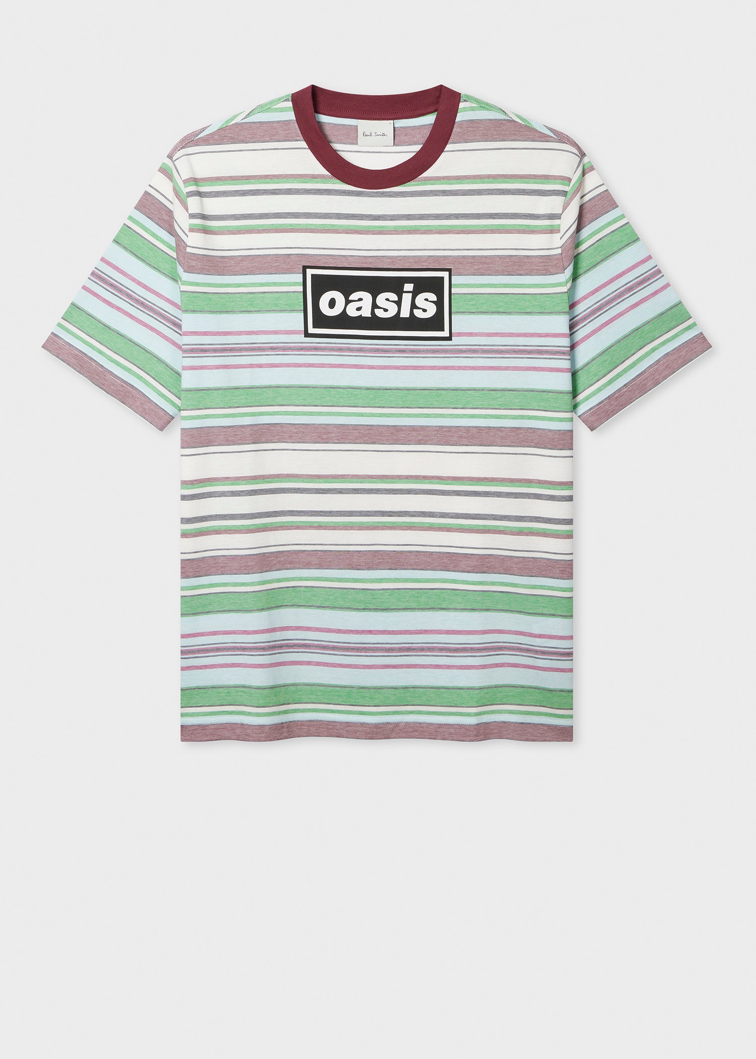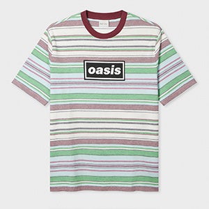 今回のコレクションには、グラフィックTシャツ、ボーダーTシャツ、キャップ、バッグ、アウターなど幅広いアイテムがラインアップ。名曲の歌詞やタイトルを落とし込んだプリントや刺繍のほか、オアシスのロゴとポール・スミスのシグネチャーストライプを組み合わせた特別仕様のデザインも登場します。