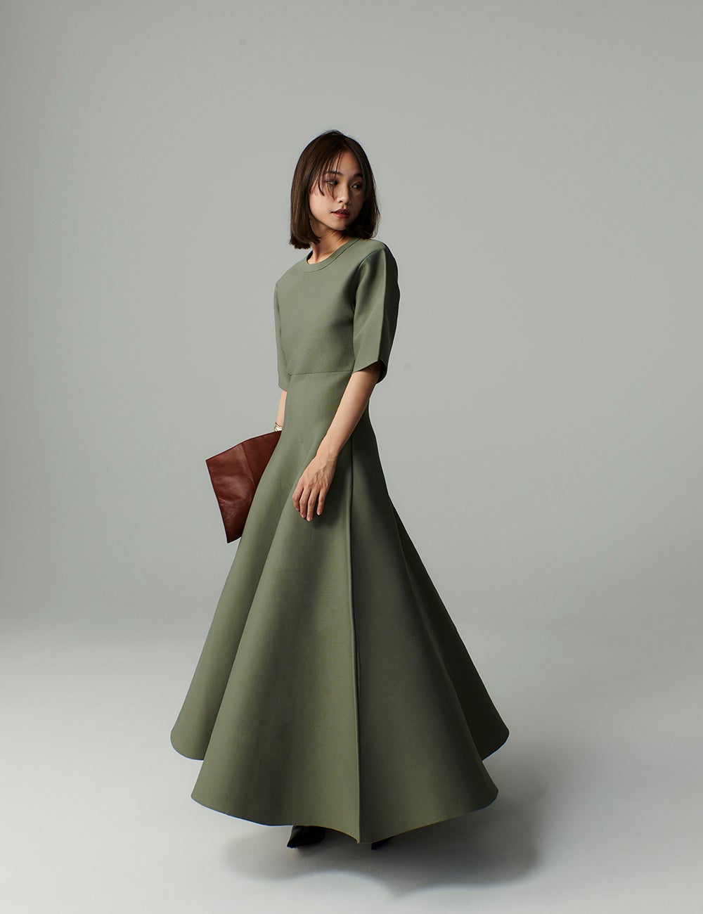 たっぷりと使用している生地と、シンプルだからこそ首回りの縫製や細かな仕様にこだわりが詰まったドレスです。