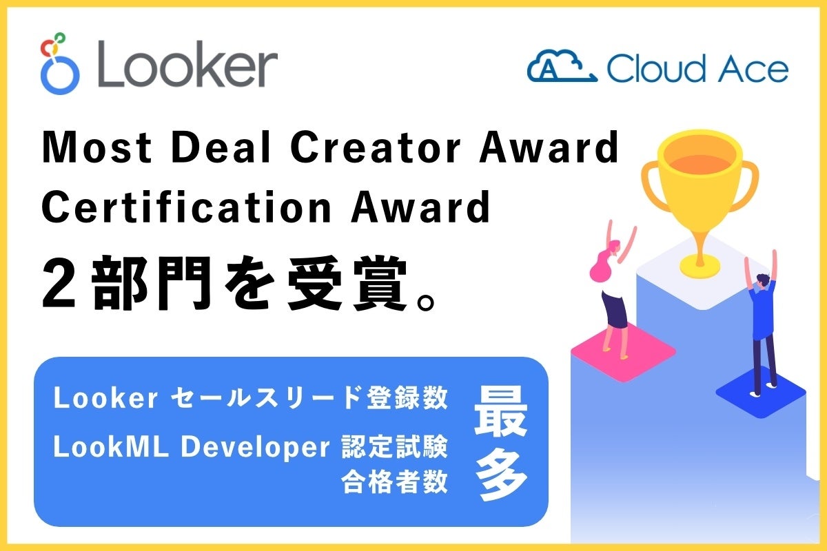 クラウドエース株式会社(本社:東京都千代田区、代表取締役社長:青木 誠)は、 2021 年 11 月 26 日、BI 機能を兼ね備えたデータ分析プラットフォームを提供する Looker が開催する 2021 Partner Summit にて「Most Deal Creator Award」「Certification Award」の 2 部門において受賞したことを発表いたします。