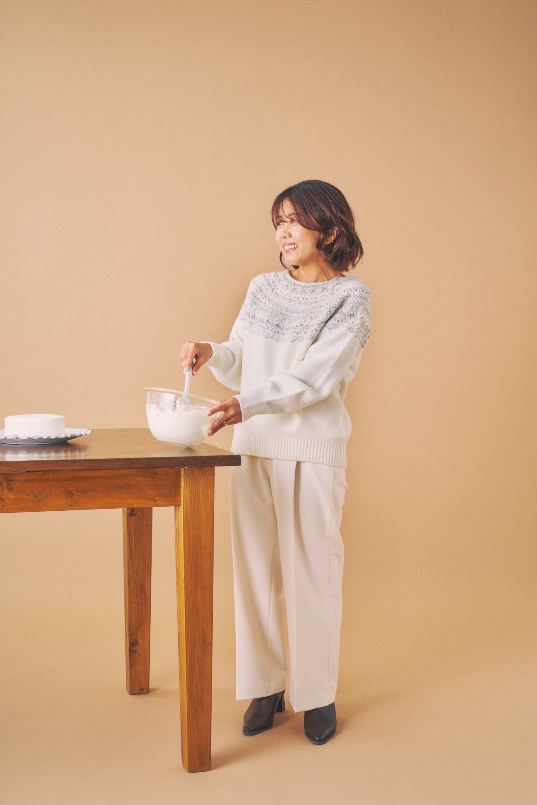 ひとつは、キラキラとした求心状の柄が目を惹くニットプルオーバー。立体感のあるラメ糸が、“星屑を散りばめた冬の景色”を思わせる、シーズンムード高まるデザインです。もう一つは、まるでホイップクリームのような立体的なケーブルデザインがポイントのニット。どちらも小柄女性が美しく見えるよう、細部までこだわり抜いたシルエットに仕上げました。