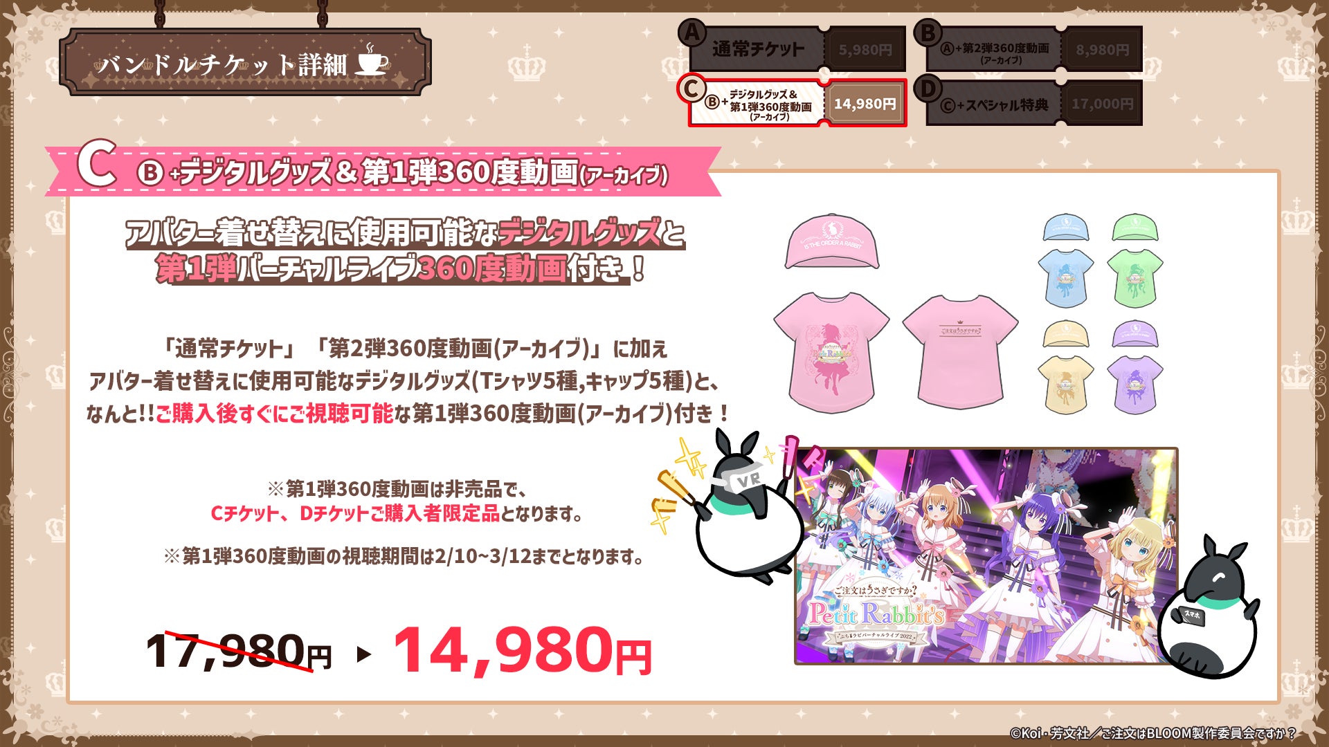 ・Cチケット(Bチケット+デジタルグッズ&第1弾360度動画アーカイブ付き):14,980円(1,498VARKコイン)