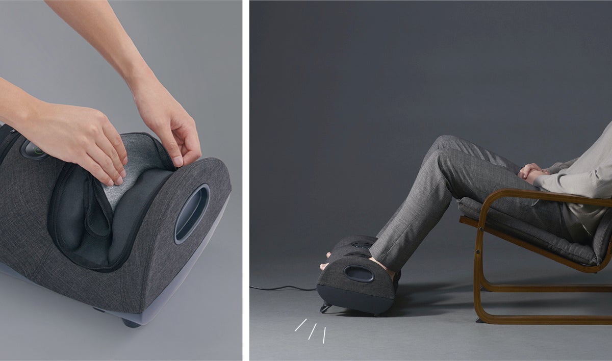 テレワークによりおうちで机に向かうことが多くなった今、“仕事をしながらマッサージ”をぜひオススメします。歩く量が減った分、疲れを感じやすくなった足をサッとマッサージしてリセットできるフットマッサージャー。しっかりしたもみ心地はもちろん、すぐに使えるように側に置いてほしい思いから、デザインにこだわりました。表面を生地張りにしインテリアに馴染むように仕上げ、急な来客があっても恥ずかしくないシックなデザインは他にはない商品です。