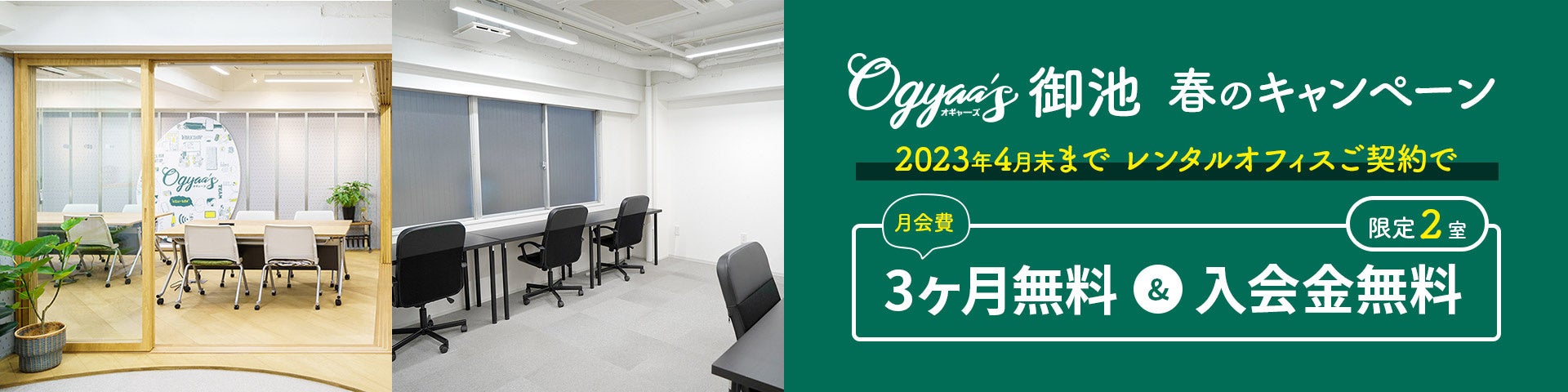春から新しいオフィス環境を検討しているスタートアップ・起業家の方、新規事業立ち上げや営業拠点の拡大で関西圏のサテライト拠点をお探しの企業の方など、初期費用を抑えることのできるお得な『Ogyaa's梅田「春のキャンペーン」』を、ぜひご利用ください。