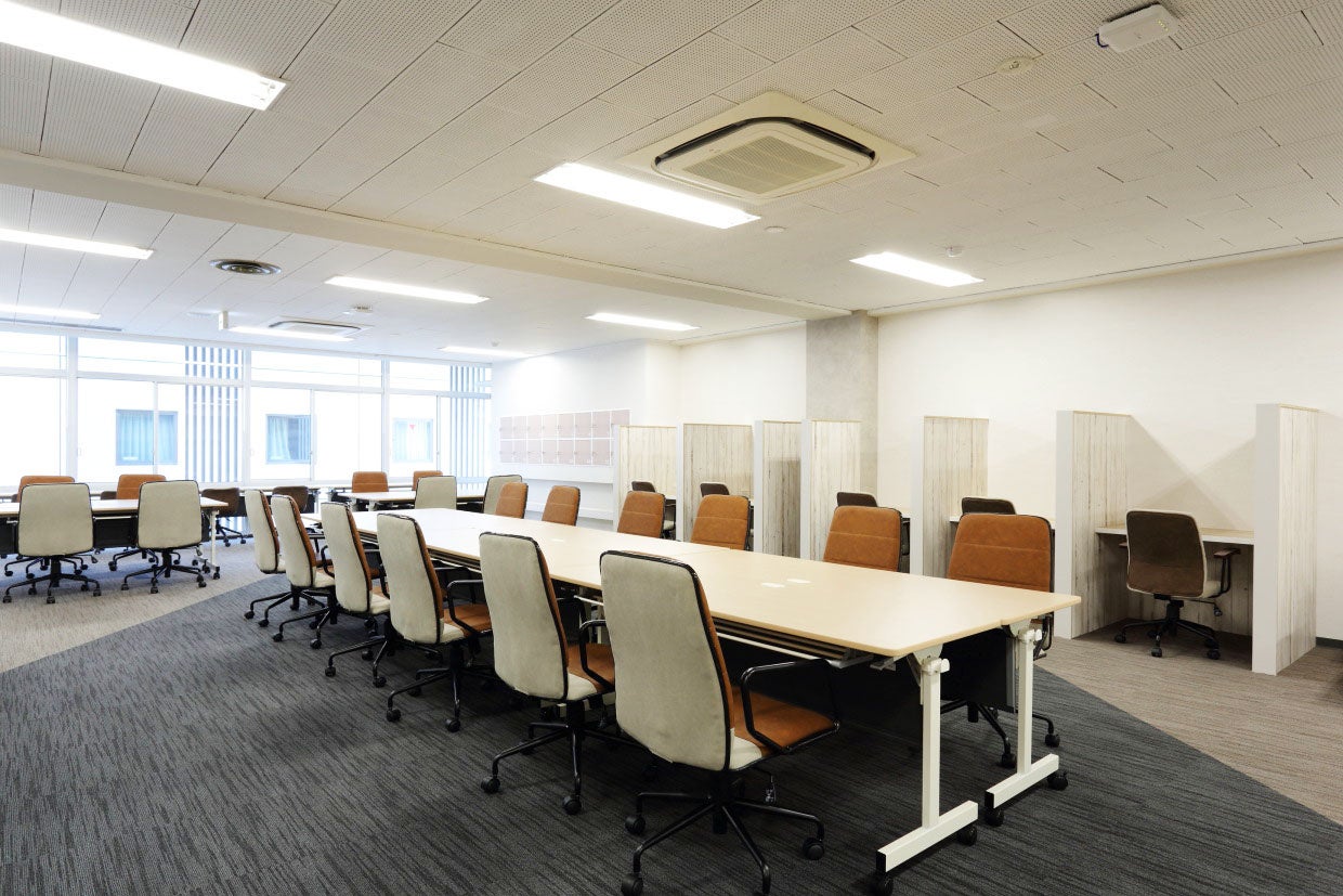 ・Wi-Fi、複合機、カフェスペースなどの設備、机などの備品完備。
