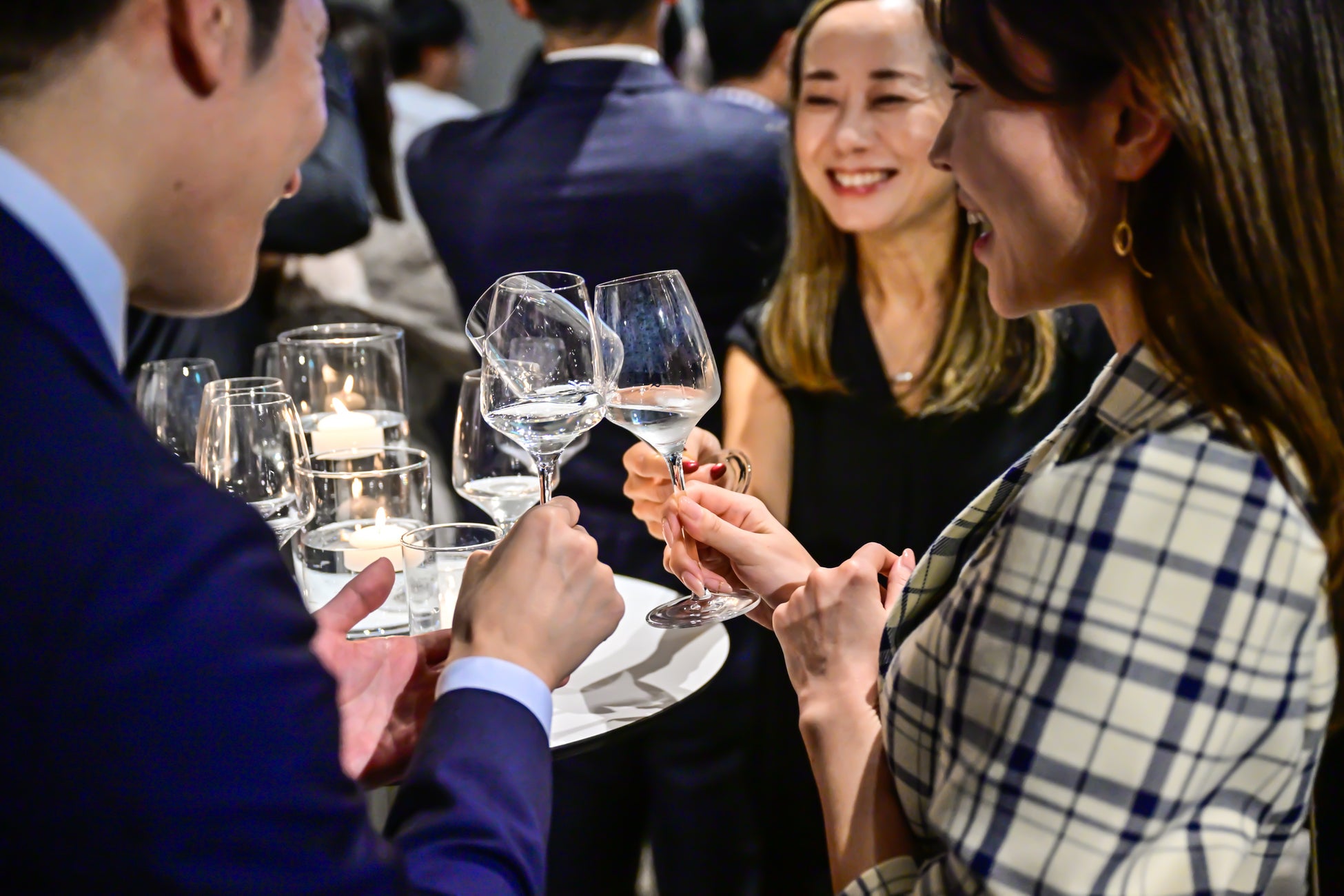 乾杯の後、一瞬の静寂が会場を覆うと、恍惚としてグラスを眺めながら互いに交わす笑顔で会場全体が包み込まれました。「おいしい」「すごい」という声が各所で聞こえ、生駒から語られる香りや味わいの紹介に聞き入りながら、ひと口ひと口と堪能していました。