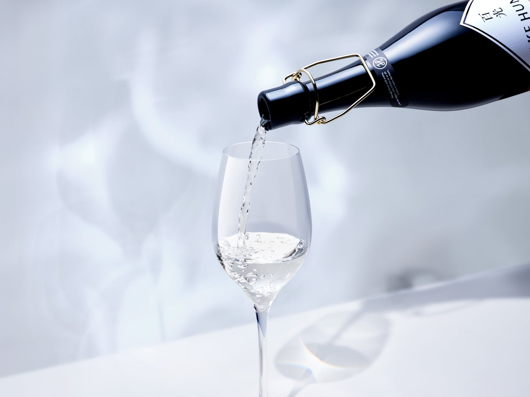 『百光』は、日本酒における“上質”を追求した一本です。最高峰の醸造技術をもって、この上ない透明感、瑞々しくエレガントな香り、美しく響く余韻を実現しました。まばゆい光が人生を照らし、豊かに彩るように。口にした瞬間を多幸感で包み込み、飲む人を輝かせるような、忘れることのない体験をお約束します。