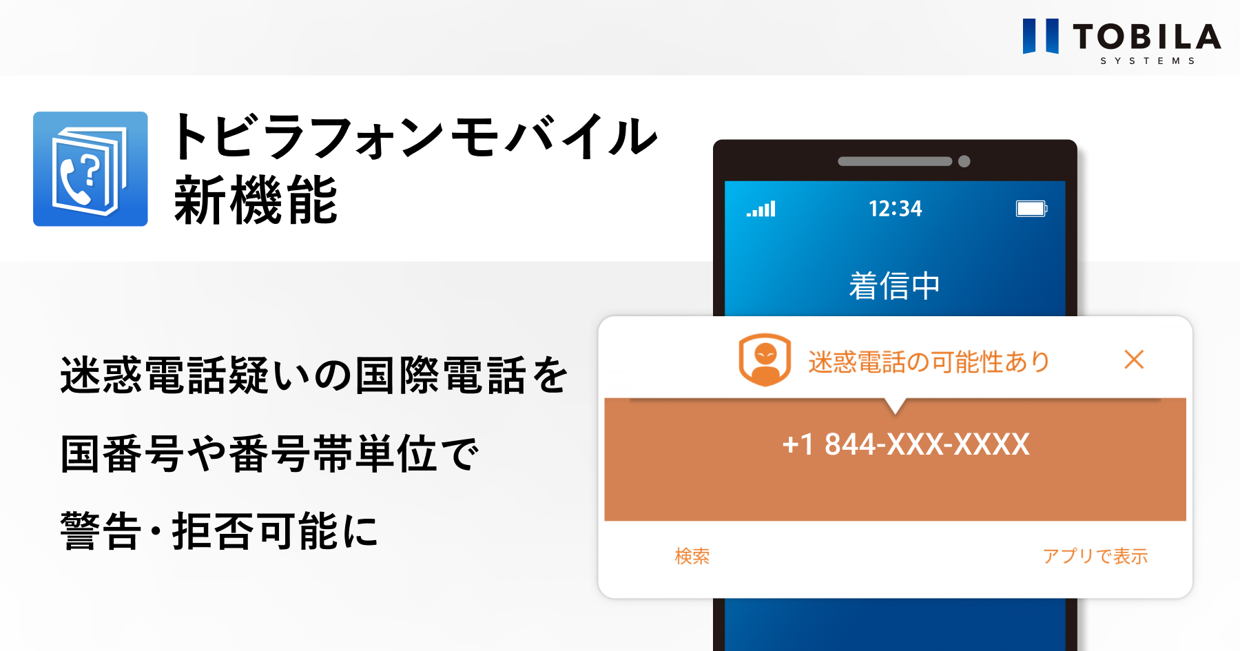 トビラフォンモバイル 迷惑電話疑いの国際電話を国番号や番号帯単位で警告・拒否可能に