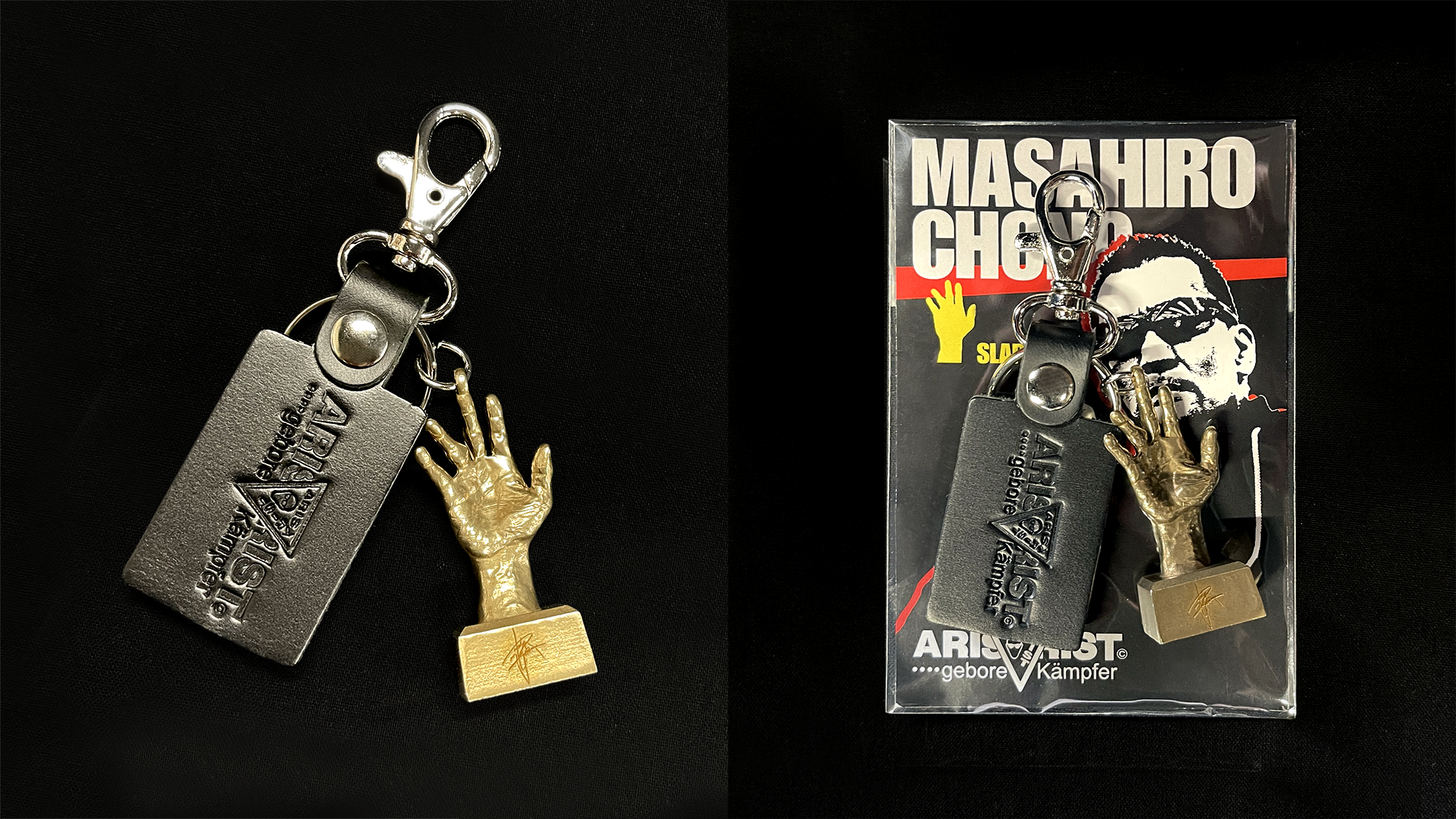蝶野正洋本人の手型を3Dスキャンし、1/7サイズに縮小したキーリングです。