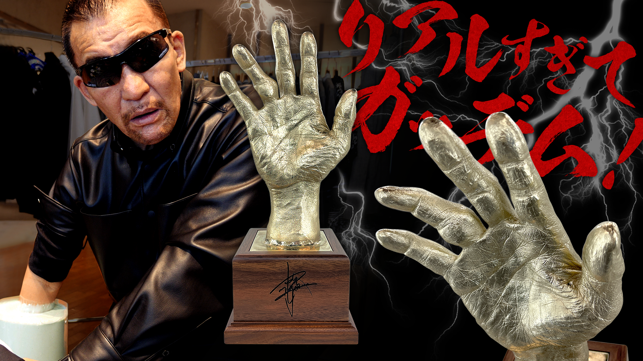 蝶野正洋本人の手型を採取して製作している為、血管やシワ、毛穴、プロレスラーとして長年戦ってきた証である象徴的な薬指までも完全に再現されています。