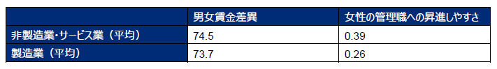2. 非製造業・サービス業は製造業に比べて女性が管理職へ昇進しやすく男女の賃金差異が小さい傾向が見られる
