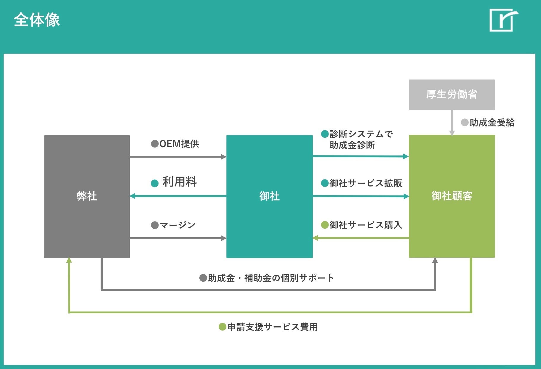 - 助成金を「自社商材」として販売できる、それが「ラクリア助成金診断システムOEM」