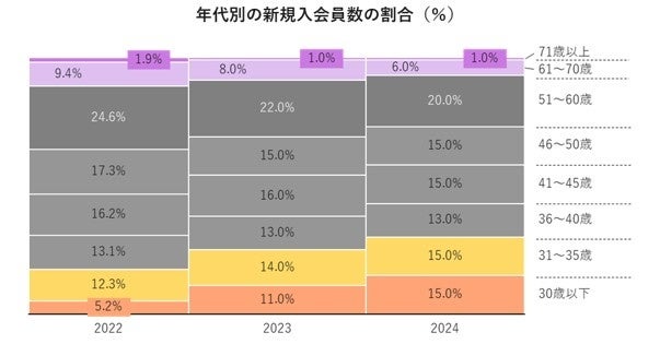 ・2024年新規入会者数では35歳以下が全体の30%を占め、若年層の入会が増加傾向に。