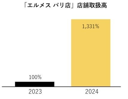 「エルメス」ではパリ店での取扱高が急増し、取扱高は前年比で約1,331%の増加を記録。