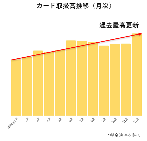 ・カード取扱高は2024年も引き続き好調に推移。2024年12月には過去最高の取扱高を更新*。