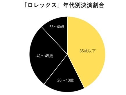 カテゴリー別取扱高の前年比伸び率で3位となった「宝飾店、時計、銀製品」のうち、時計を代表するブランド「ロレックス」の購入による取扱高が前年比で約531%と急増。35歳以下の年代による決済が約4割と、若年層のライフスタイルにおける積極的な消費活動が伺えます。