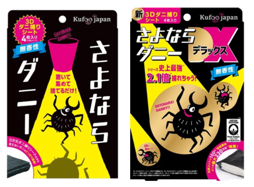 家族にやさしい、殺虫成分不使用のダニ対策ブランド。メイン商品の「さよならダニー3Dダニ捕りシート」は、「置いて集めて捨てるだけ」でお家のダニ対策ができるダニ捕りシートです。コンパクトサイズのシートを置くだけで、お家のダニを効率的に捕獲し、ダニの繁殖を抑制。ダニの発生が予想される、枕、ソファ、カーペット等のダニ対策を、簡単に確実にして頂けます(※1)。手軽さと実感力で多くのお客様に支持され、「さよならダニーは」5年連続ダニ用殺虫剤部門売上NO.1(※2)を獲得。ブランドが誕生した2018年からのダニ商材市場の拡大を牽引し続けています。さらに、「さよならダニー」をご愛用頂いている1万人以上のお客様の声をもとに商品開発を重ね、シリーズ史上最高、1枚当たり57万匹(※3)のダニが捕獲できる「さよならダニーDX」を、2024年2月より販売開始しております。
