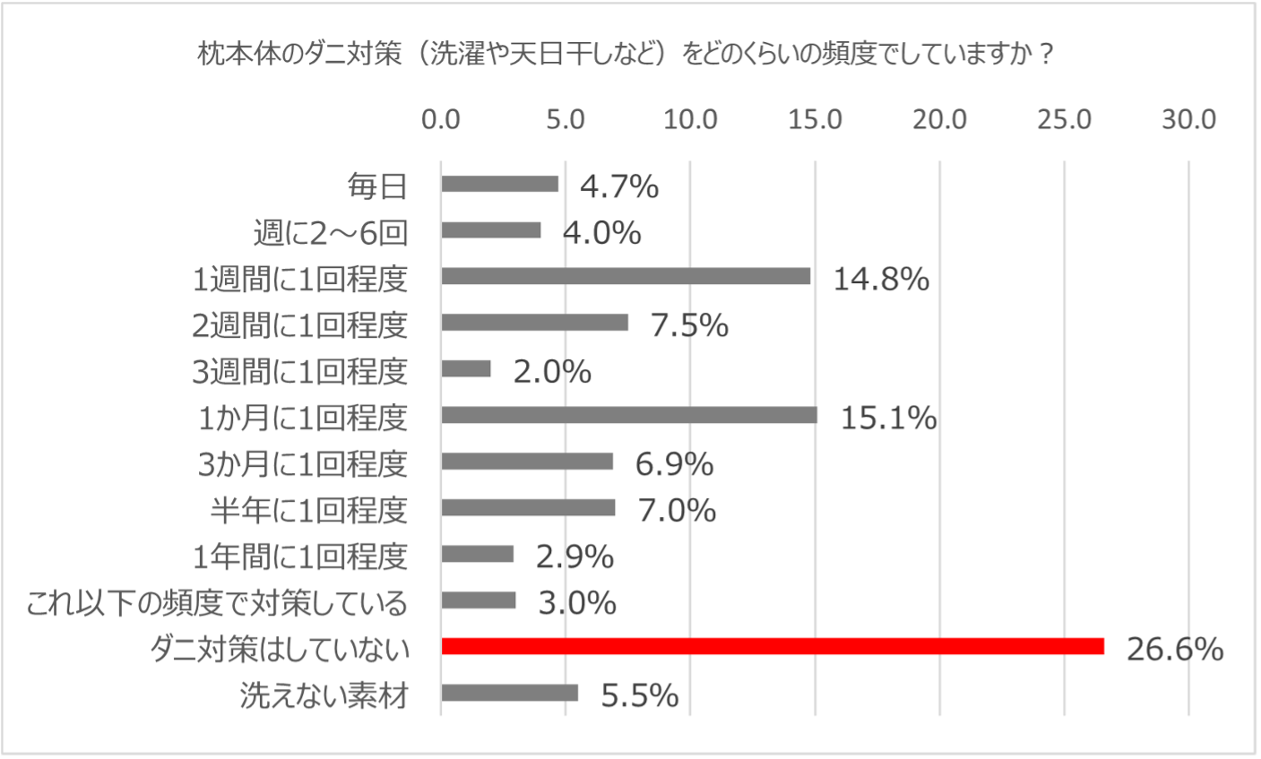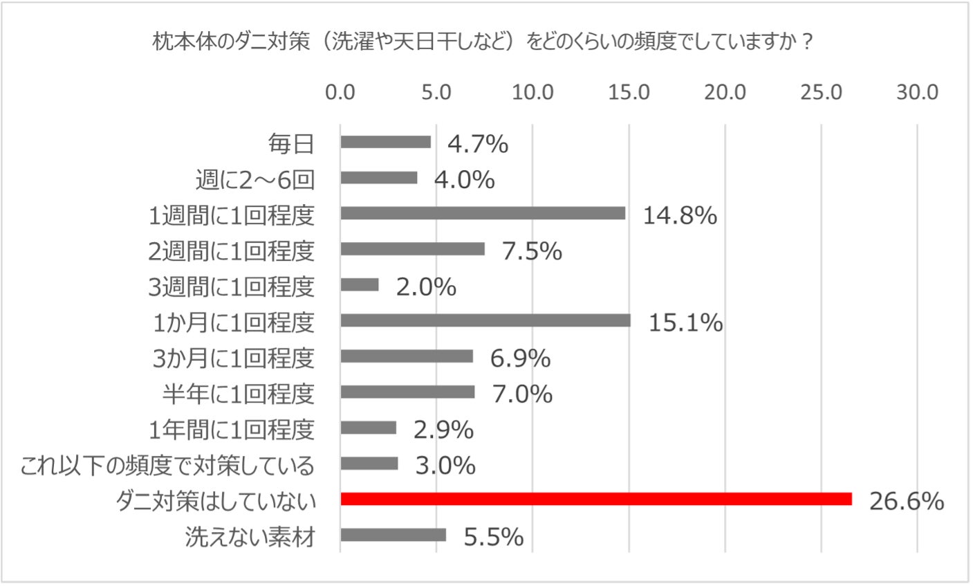 <設問>枕本体のダニ対策(洗濯や天日干しなど)をどのくらいの頻度でしていますか?