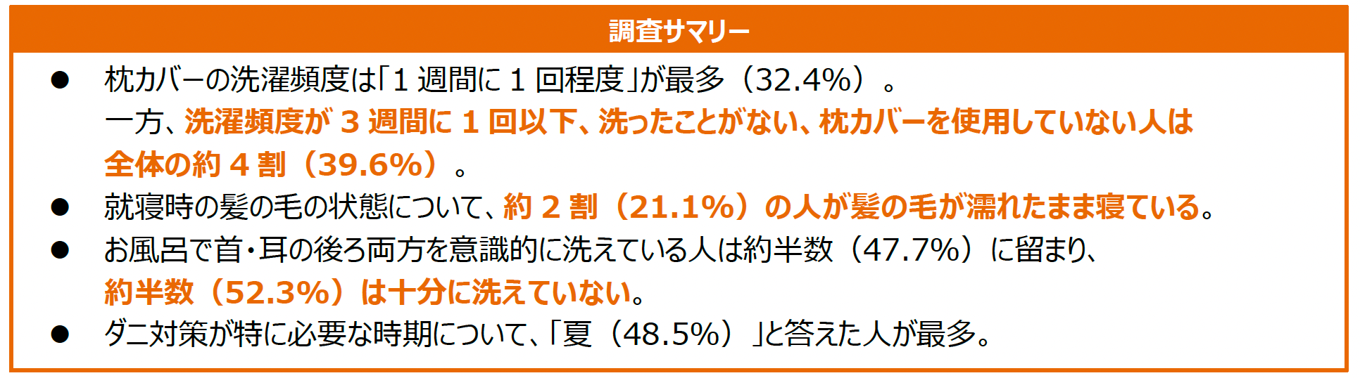 ■調査名 :枕のダニ対策に関する調査