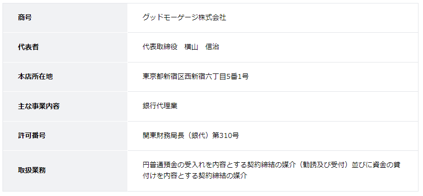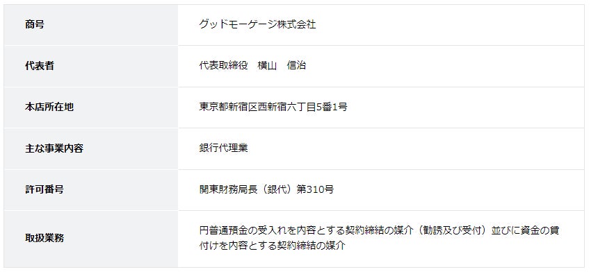【銀行代理業者】 グッドモーゲージ株式会社