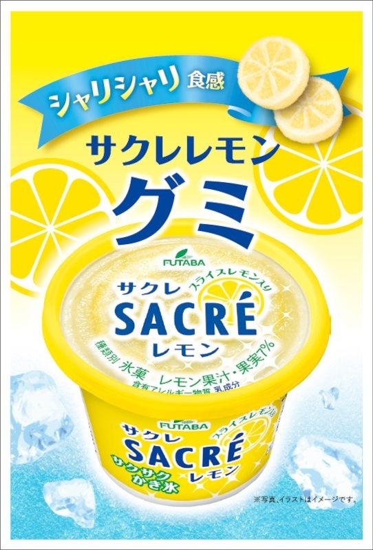 商品特徴:シャリシャリとした食感のレモンアイスとスライスレモンが特徴的な氷菓「サクレレモン」とのコラボお菓子。レモン型グミでサクレのスライスレモンを表現し、表面にはすっぱいパウダーをかけてレモンの爽やかな甘酸っぱさを演出しました。