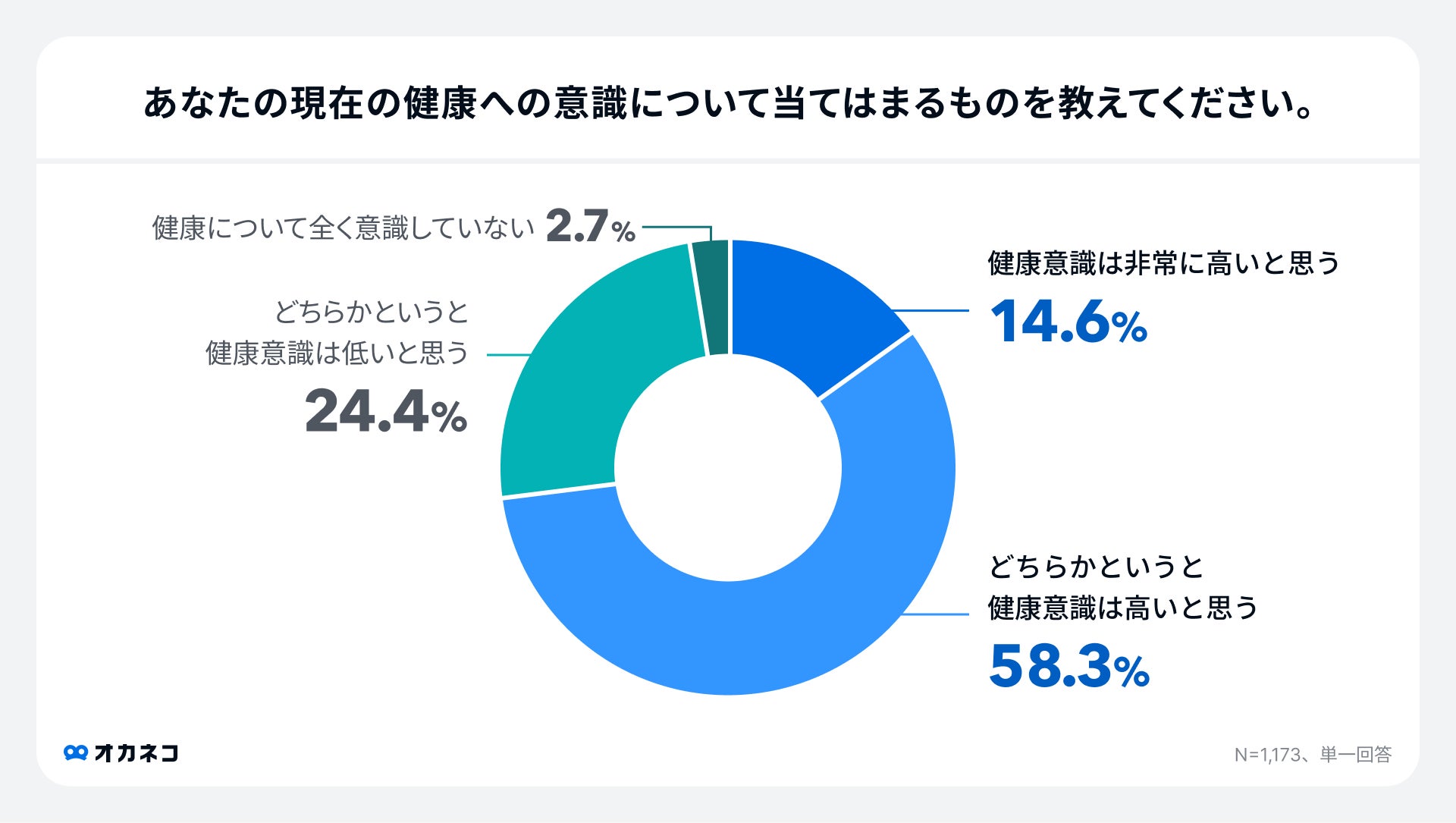 国内最大級の家計診断・相談サービス「オカネコ」を運営する株式会社400F(フォーハンドレッド・エフ、本社:東京都中央区、代表取締役社長:中村 仁、以下「当社」)は、全国の『オカネコ』ユーザーの男女1,173人を対象に「オカネコ 健康に関する意識調査」を実施しました。