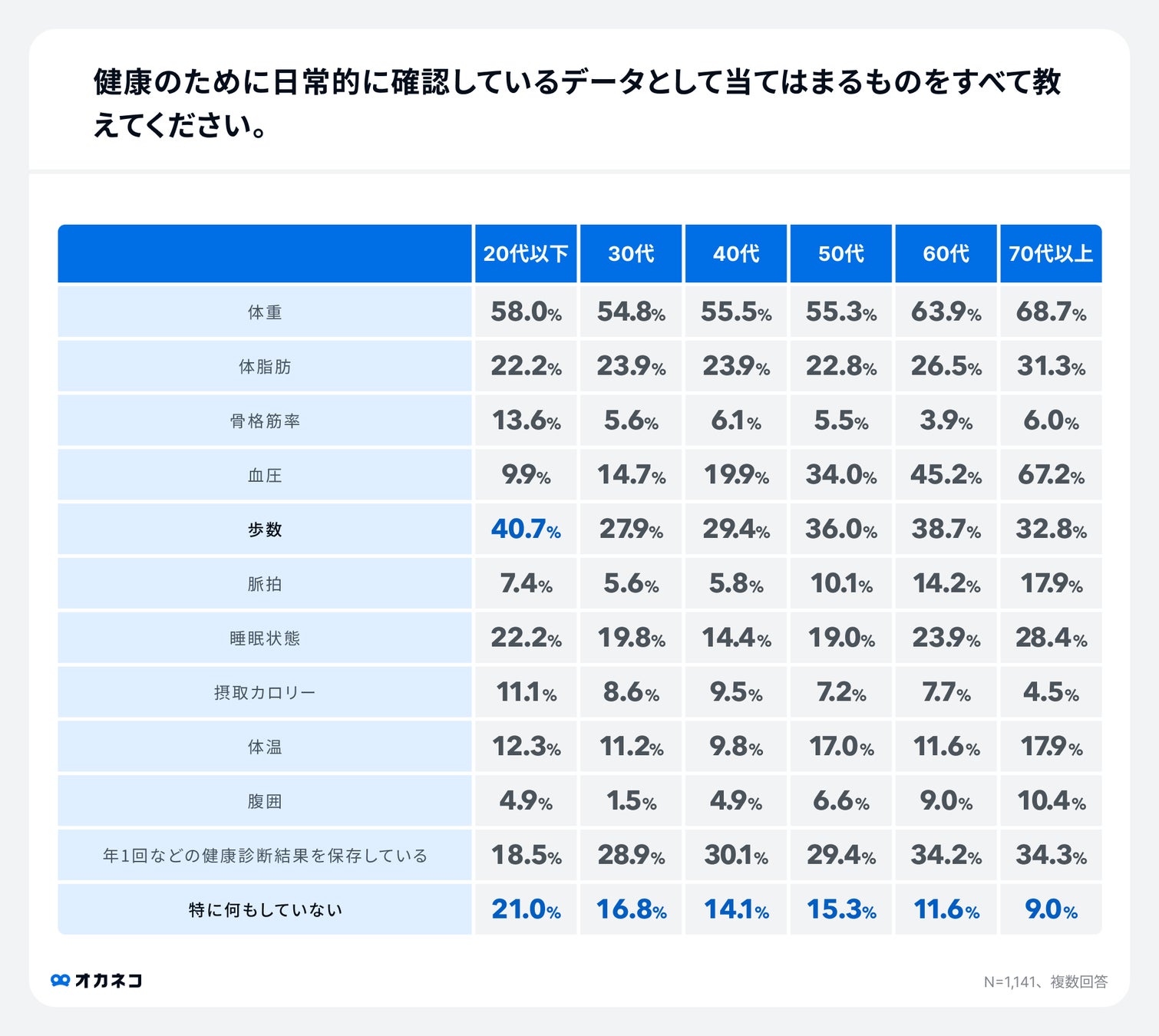 ※調査結果データの引用、転載に際しては必ず『オカネコ 健康に関する意識調査』『株式会社400F「オカネコ」調べ』と記載してください。