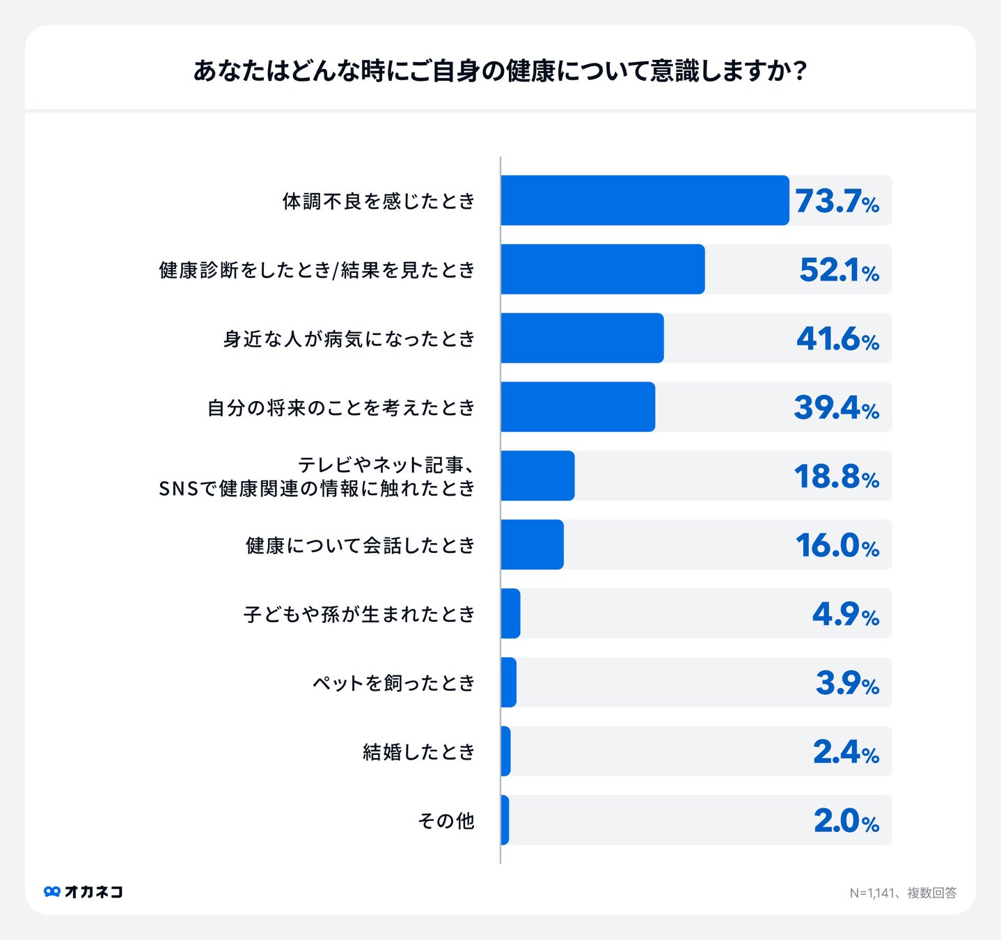 ■どんな時に健康について意識する?1位は「体調不良を感じたとき」73.7%