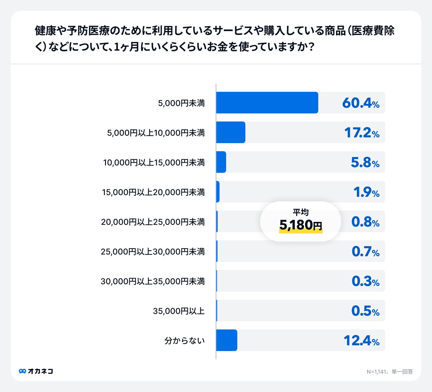 【オカネコ 健康に関する意識調査】健康や予防医療の為のお金平均5,180円/月!健康に対する意識は高い一方で病気やけがの時の備え「できていない」4割