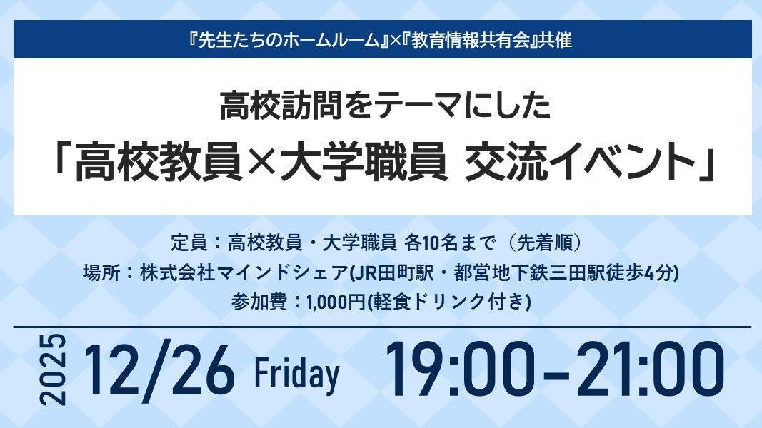 現場の声を起点に、高校と大学を結ぶ対話の場 ディスカッション型交流イベント第2回を開催【12月26日(金)|東京開催|高校教員・大学職員 各10名限定】