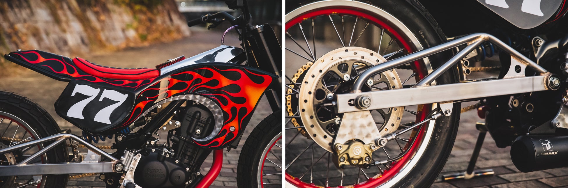 「Carolina Reaper」のコンセプトは、レトロとモダン、そして準レーサーとカスタムバイクの融合。1970年代のアメリカでフラットトラック選手権に出場していたフラットトラックレーサーや四輪のレーシングカーのような、真剣なレーシングマシンでありながら、遊び心を持ったアメリカンレーシングな車両を目指して製作されています。