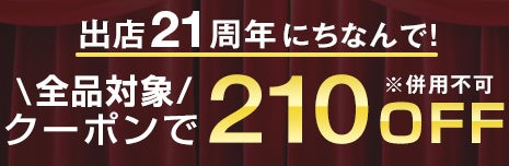 楽天出店21周年にちなんで、全品対象の210円OFFクーポンを配布いたします。