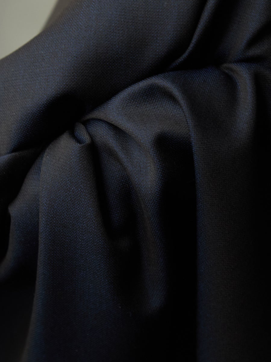 シルク×ウールでお作りした、シーンを問わず着られるネイビー。