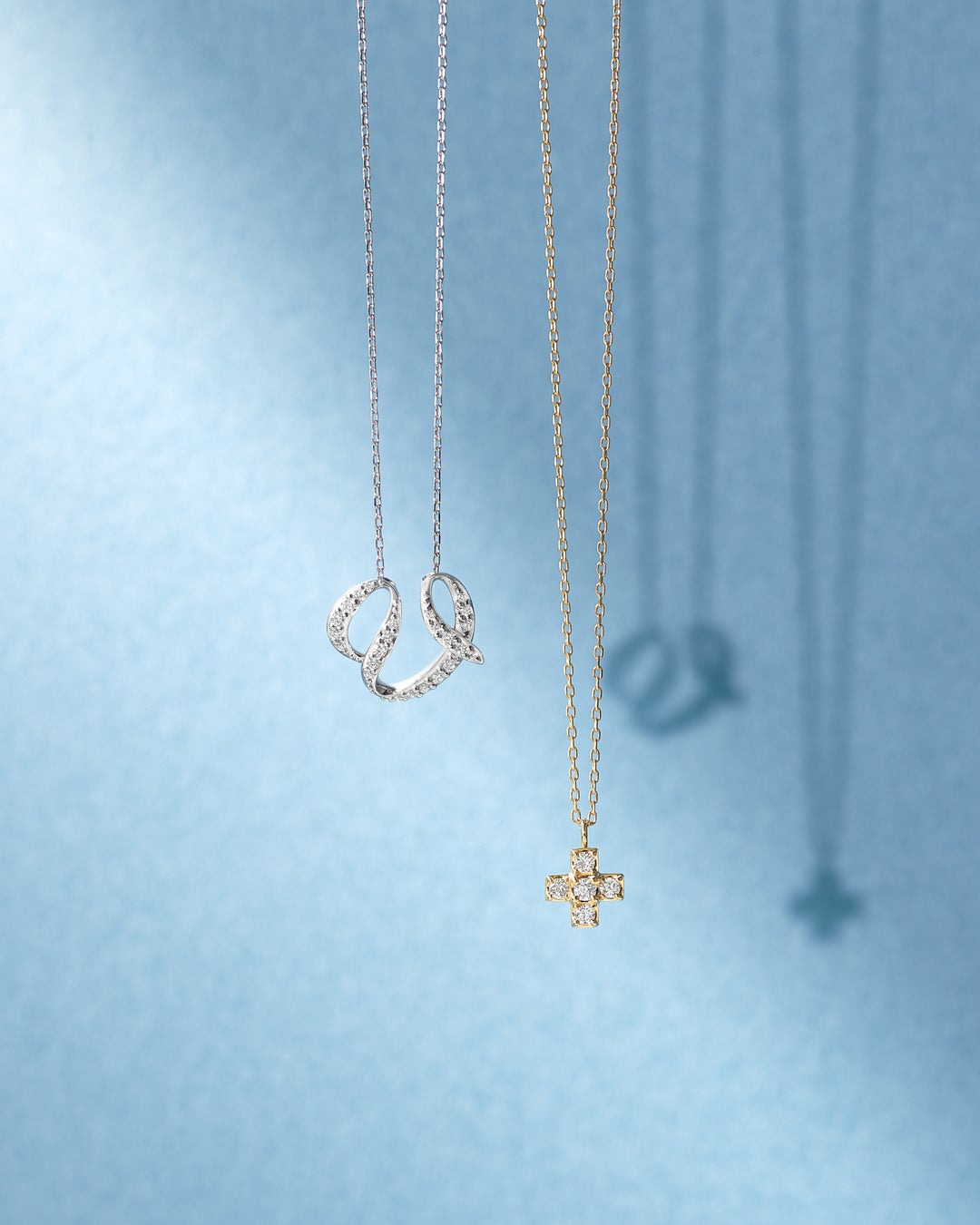 ・ネックレス(左) ¥129,800(PT/ダイヤモンド)