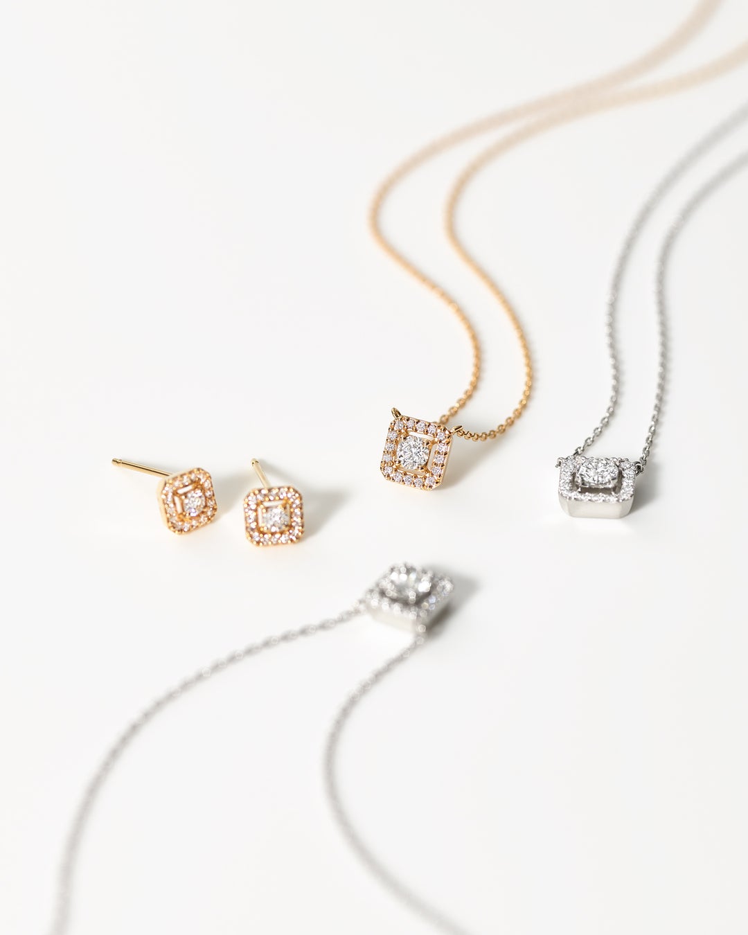 パリの街の華やかな歴史を象徴する、ヴァンドーム広場の八角形からインスピレーションを受けた新作コレクション。まばゆい輝きを放つエクセレントカットダイヤモンドを、メレダイヤモンドをあしらった八角形のフレームで囲んだ、エレガントで洗練されたデザイン。身に着けることで自信を与えてくれるジュエリーです。