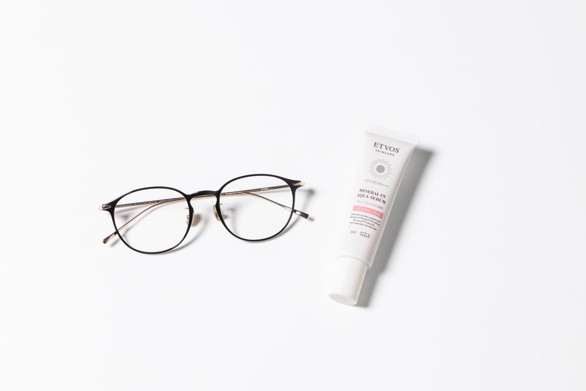 あわせて、メガネによる目のUV対策も忘れずに。フレームが顔にメリハリをつけ、顔の印象を強める効果も期待できるため、リモート会議にもおすすめです。