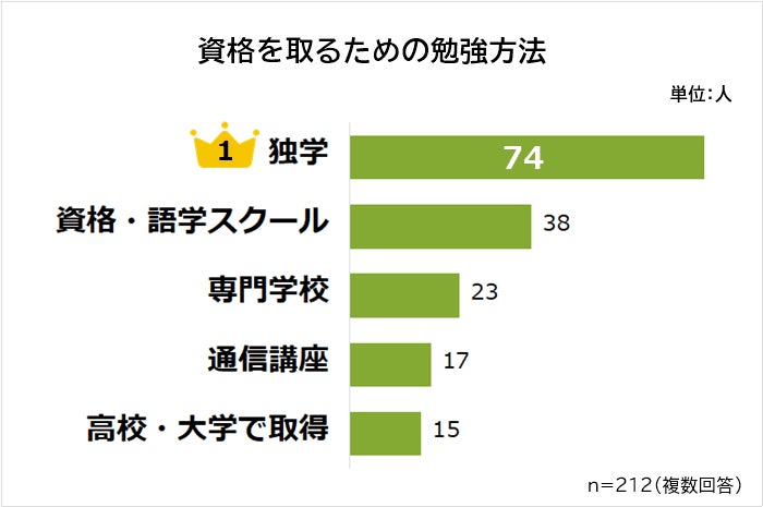 続いて「資格取得のための勉強法は?」と聞いたところ、回答は以下のようになりました。