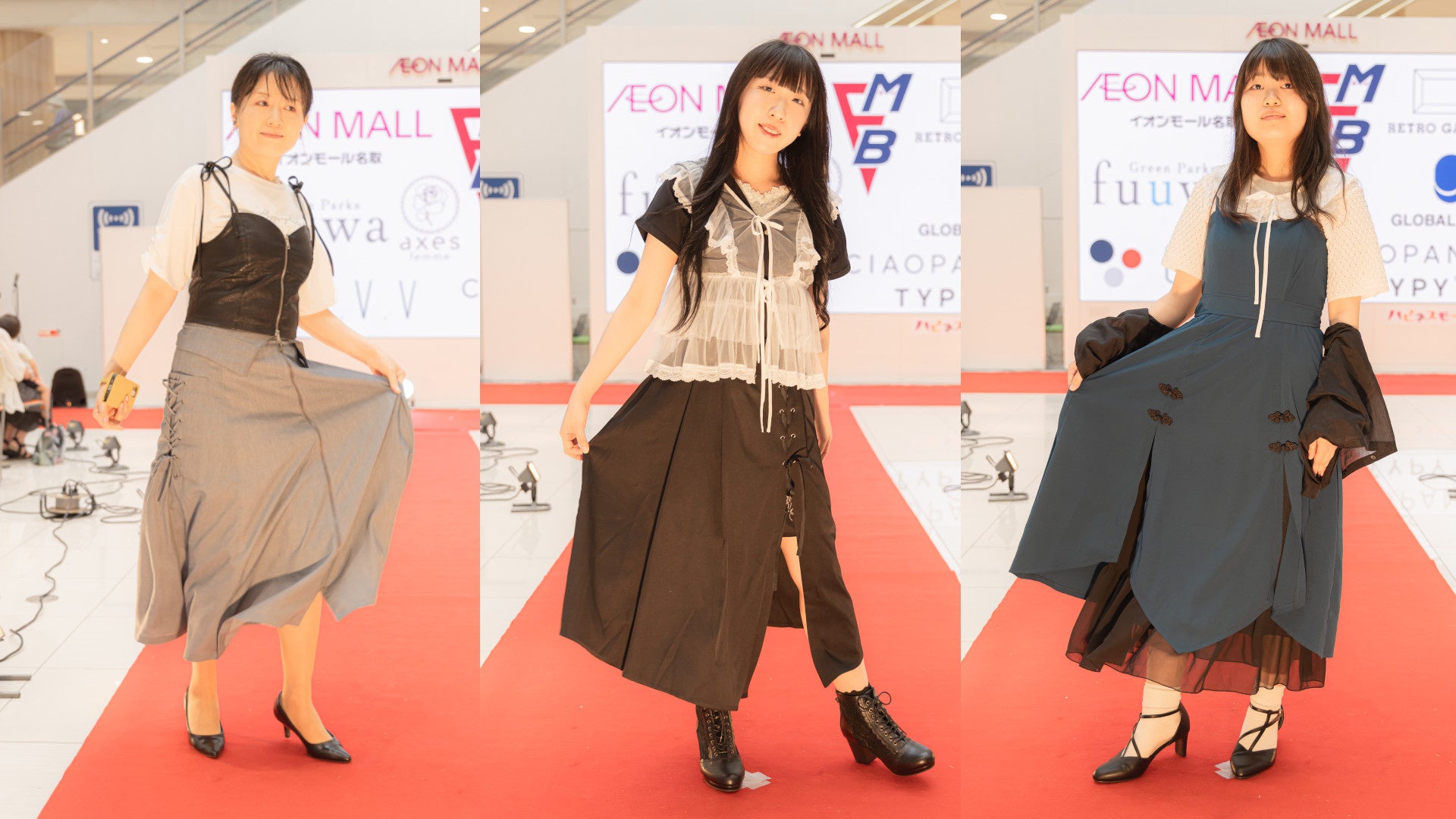 学校で学んだファッションや最新トレンドの知識、そして1人1人の個性とセンスを存分に発揮してブランドの垣根を超えたミックスコーデを考え、実際に着用してランウェイを歩いて披露。イオンモール名取に出店しているa.v.v、グローバルワーク、チャオパニックティピー、グリーンパークスフーワ、レトロギャラリーにご協力いただき、各ブランドとaxes femmeとを組み合わせた新たなファッションを提案してくれました。