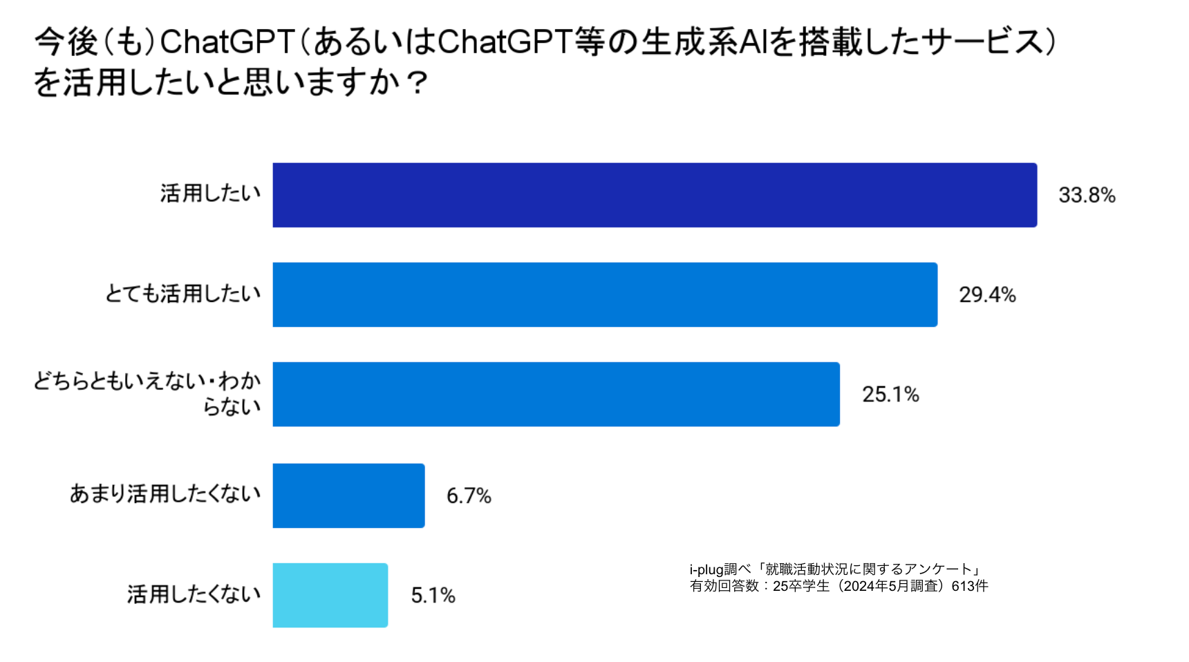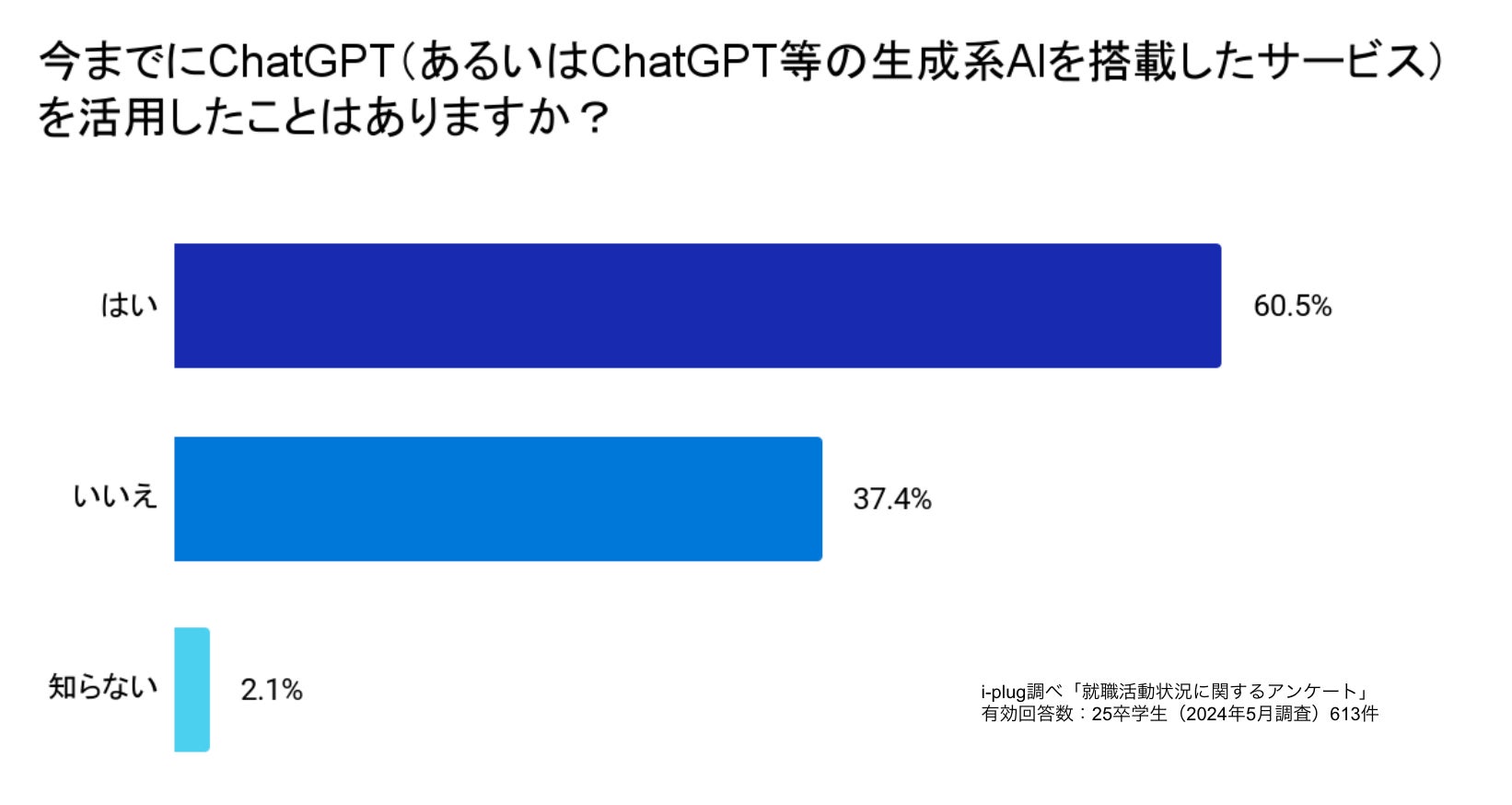 「今までにChatGPT等を活用したことがある」と回答した25卒学生は、60.5%でした。