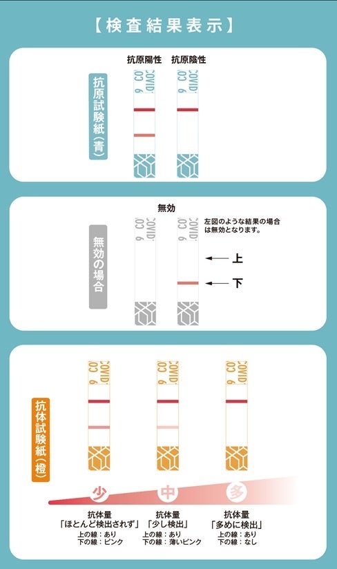 本品での抗原試験紙で反応がなかったとしてもSARS-CoV-2感染を否定するものではありません。