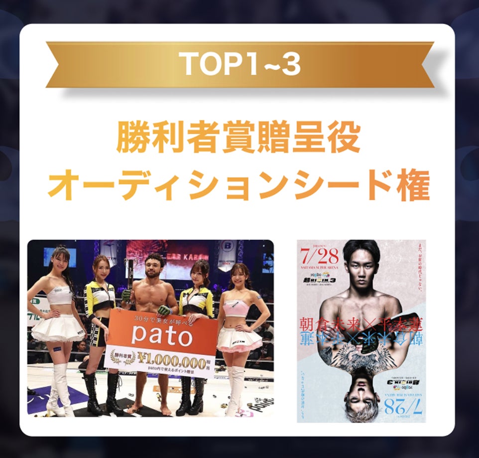 patoキャストに超RIZIN.3の勝利者賞をプレゼンターとして授与ができる権利などをご用意いたしました。